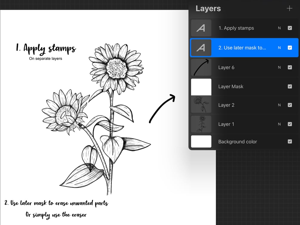 I have used digital watercolor brushes in my coloured illustrations but you could use any brushes you like.