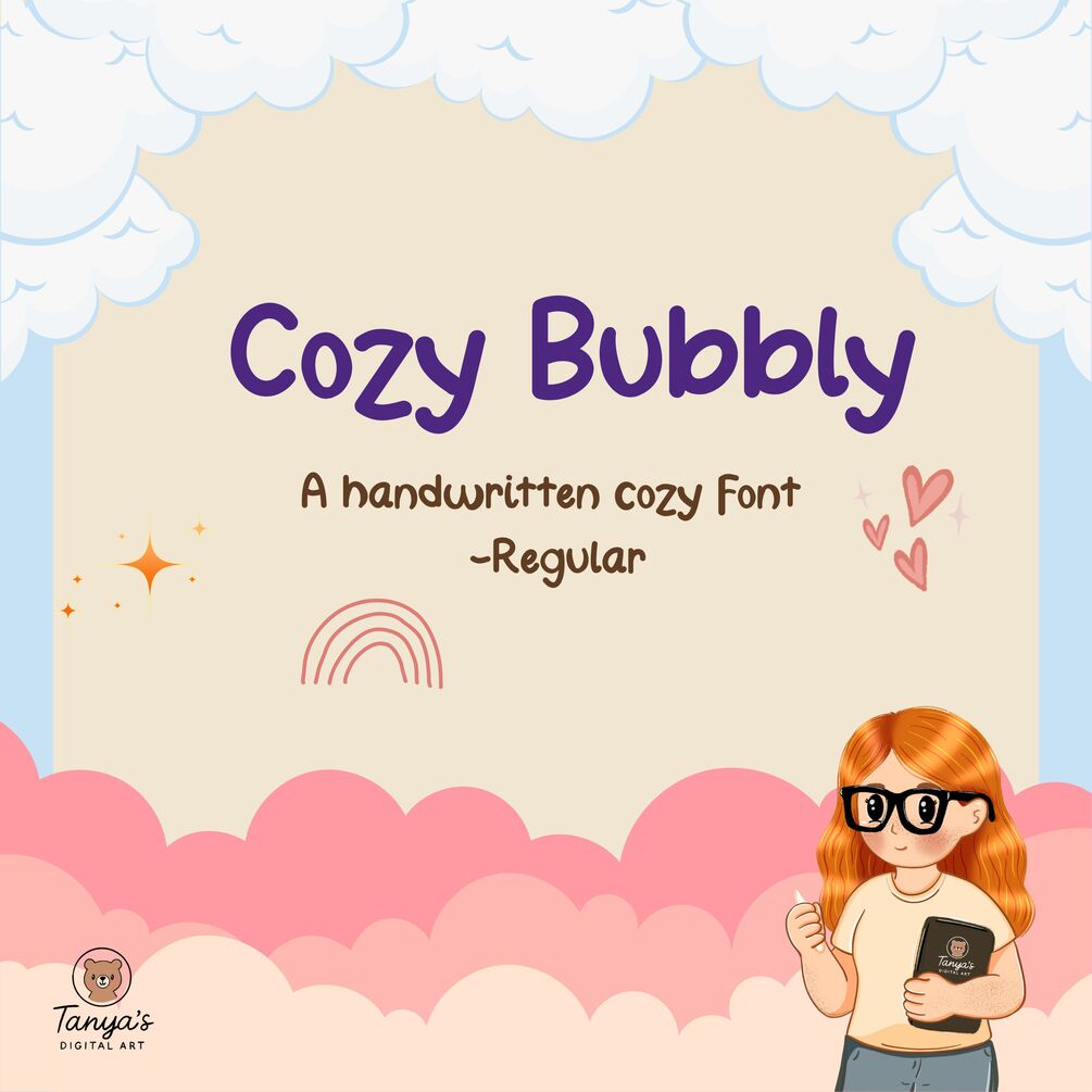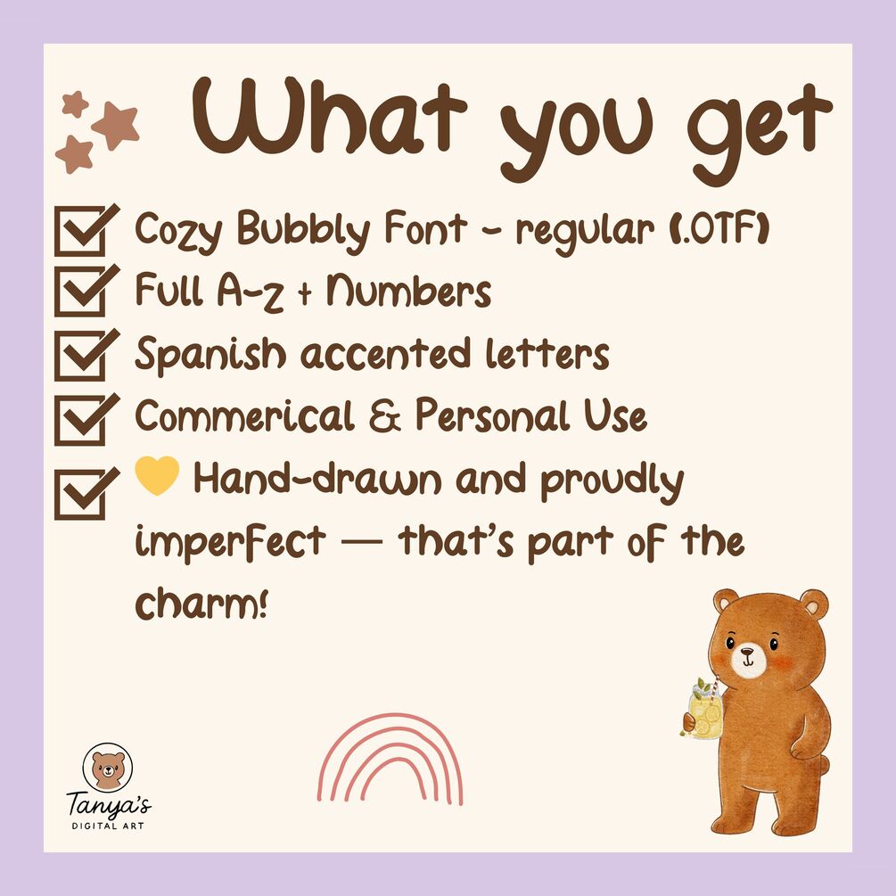 Cozy Bubbly is the third font in my cozy collection — a soft, handwritten typeface designed to feel warm, simple, and personal. It’s perfect for journaling, planner's, printables, and any project that needs a touch of handmade charm.