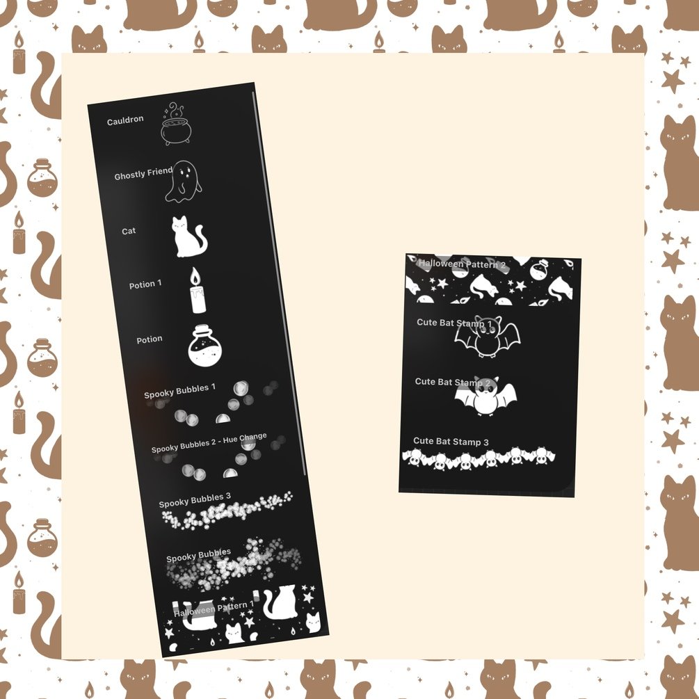 Whether you’re drawing spell books, pumpkins, or enchanted potions, these brushes make it easy to add a fun, hand-drawn Halloween vibe to your art.