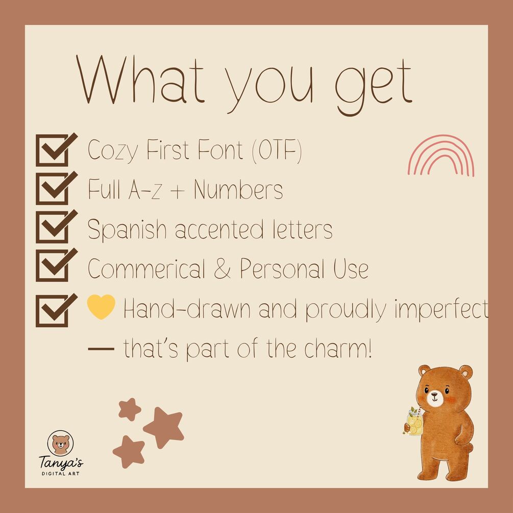 Cozy First Font (OTF) - regular supporting Spanish accents. Personal and Commercial license