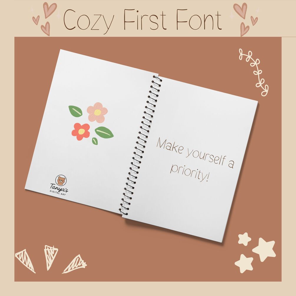 Cozy First is the very first font in my cozy collection — a soft, handwritten typeface designed to feel warm, simple, and personal. It’s perfect for journaling, planners, printables, and any project that needs a touch of handmade charm.